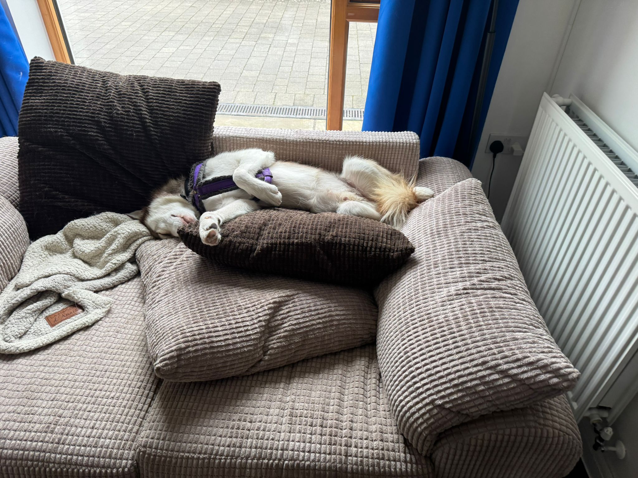 Frankie is a young and cheeky boy. He’s playful and full of life! He can be a little clumsy, and we think he has a bit of filling out to do, but he loves to play and be made a fuss of. After all the excitement is done, he’s happy to be your foot warmer.